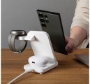 Bezdrôtová nabíjačka v minimalistickom dizajne, ktorá dokáže nabíjať telefón, bezdrôtové slúchadlá a hodinky súčasne. Hlavná nabíjacia plocha s výkonom až 15 W je určená pre váš telefón, ktorý môžete nabíjať vertikálne aj horizontálne, nabíjanie je indikované diódou LED. Sekundárna nabíjacia plocha na základni stojana s výkonom 5 W je ideálna pre slúchadlá TWS, iný telefón alebo iné zariadenie na bezdrôtové nabíjanie. Tretia plocha je vyvinutá špeciálne na nabíjanie hodiniek Samsung Galaxy Watch. Tento adaptér možno odpojiť a pripojiť k iným nabíjačkám pomocou konektora USB-C. Zariadenie Powerstation for Samsung má vstupný konektor USB-C, pre plný výkon musí byť napájané štandardným 25W nabíjacím adaptérom PD. Na spodnej strane stojana sú silikónové nožičky, ktoré celý stojan pevne udržia na stole. Stojan má zabudovanú ochranu proti skratu, prepätiu a prehriatiu.