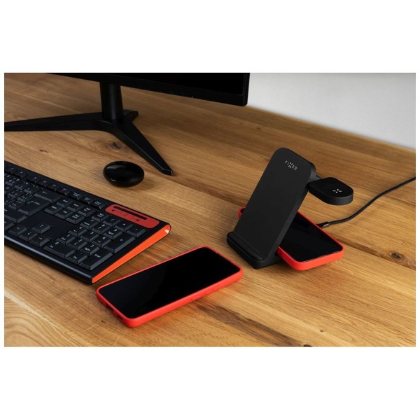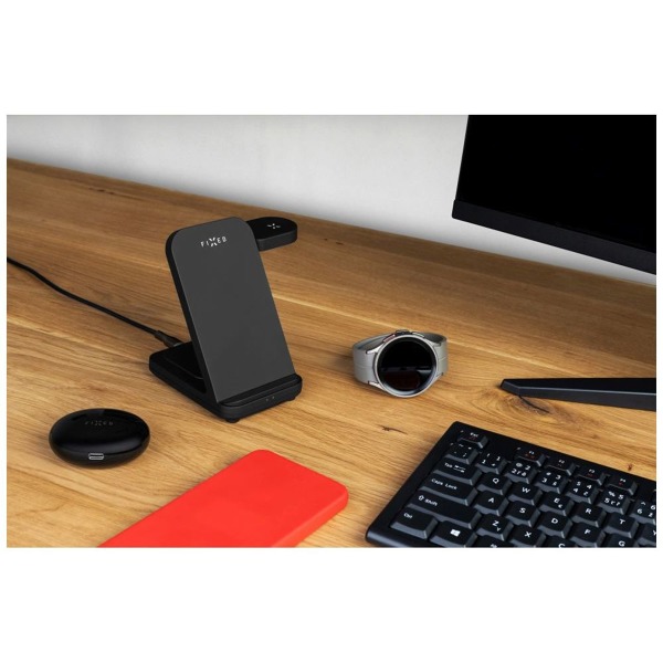 Napájacia stanica FIXED pre Samsung s bezdrôtovým nabíjaním až pre 3 zariadenia, 15W+5W+2,5W, čierna