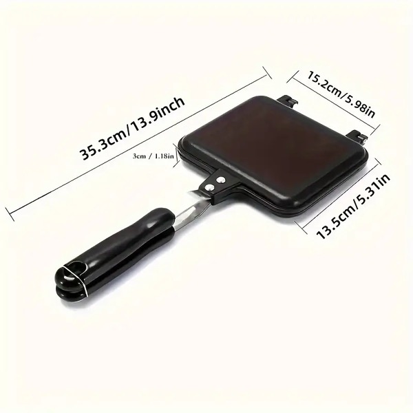 Objavte obojstrannú panvicu s nepriľnavým povrchom, univerzálnu obojstrannú panvicu s nepriľnavým povrchom, ktorá premení prípravu raňajok a večere na rýchly a chutný zážitok. Táto inovatívna panvica je ideálna na prípravu dokonale opečených sendvičov, dozlatista opečeného chleba, chrumkavých panini, omelety a ďalších pokrmov, či už ste doma v kuchyni, alebo na kempovaní.