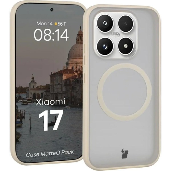 Ochranná sada Bizon Case MatteO + tvrdené sklo Bizon Glass Edge pre Xiaomi 17 - Smoke Beige