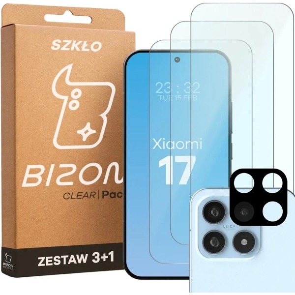 Ochranná sada tvrdeného skla na displej a šošovku fotoaparátu Bizon Clear Pack pre Xiaomi 17