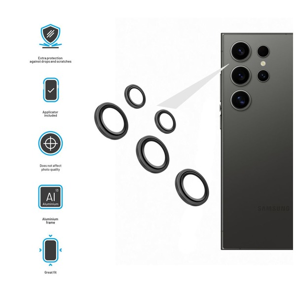 Ochranné sklo na objektív fotoaparátu FIXED Camera Glass pre Samsung Galaxy S25 Ultra, čierne