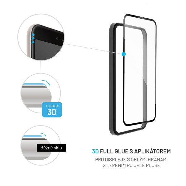 - Upozornenie: 3D sklo pokrýva celú prednú časť displeja vrátane zaoblených rohov a nemusí byť 100 % kompatibilné s niektorými typmi zadných krytov alebo puzdier