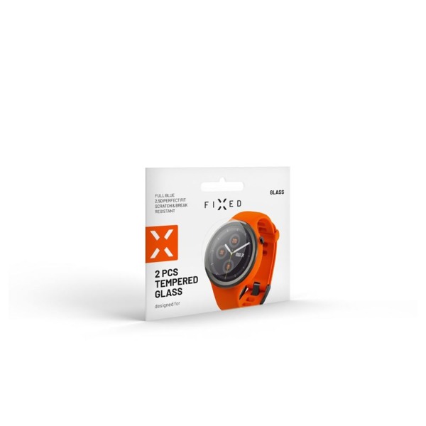 Vysokokvalitné tvrdené tvrdené sklo FIXED je ideálnou voľbou na ochranu displeja vašich hodiniek. Zabránite tak nešťastiu v podobe poškriabania alebo prasknutia displeja. Špeciálna technológia skla 2,5 D je navrhnutá špeciálne pre displeje so zaoblenými hranami. Vďaka minimálnej hrúbke takmer nezväčšuje rozmery hodiniek. Sklo má vysokú citlivosť, ovládanie dotykového displeja zostáva rovnako prirodzené ako na displeji bez skla. Ochranné sklo má vysoký stupeň odolnosti voči rôznym škrabancom a preliačinám. Vďaka 100 % priehľadnosti zostanú farby displeja hodiniek rovnako živé aj po nasadení skla. Oleofóbna úprava skla zabraňuje vzniku rôznych šmúh a odtlačkov prstov na displeji. V balení nájdete 2 kusy ochranného skla a všetko potrebné na jednoduchú a rýchlu inštaláciu.
