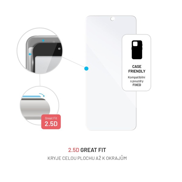 Vysokokvalitné tvrdené sklo s hrúbkou 0,33 mm pre maximálnu ochranu displeja vášho zariadenia. Sklo má vysokú citlivosť na dotyk, ponúka jednoduchú inštaláciu a 100% priehľadnosť. Ide o oleofóbne sklo (t. j. odpudzuje mastné látky a mastnotu). Ochranné sklo FIXED je jedinečné riešenie na ochranu obrazovky pred poškriabaním, nečistotami, odtlačkami prstov a dokonca aj tvrdými nárazmi.