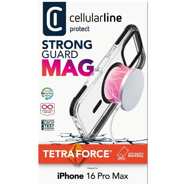 Ochranný kryt Cellularline Tetra Force Strong Guard Mag s podporou Magsafe pre Apple iPhone 16 Pro Max, transparentný