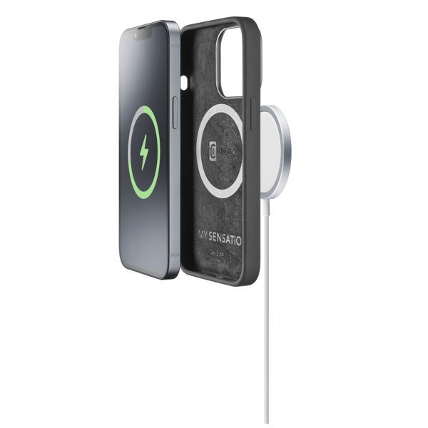 Ochranný silikónový kryt Cellularline Sensation s podporou MagSafe pre Apple iPhone 14 Plus, čierny