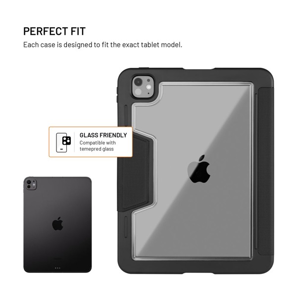Elegantné puzdro FIXED Enduro je navrhnuté na maximálnu ochranu tabletu počas každodenného používania. Kombinácia zosilneného rámu TPU a priehľadnej polykarbonátovej zadnej strany poskytuje odolnosť voči nárazom a pádom až z 1,2 metra, pričom zachováva originálny vzhľad zariadenia. Kvalitná predná časť zo syntetickej kože slúži nielen na ochranu displeja, ale aj ako praktický stojan s možnosťou nastavenia rôznych uhlov. Umožňuje pohodlné písanie, sledovanie filmov a videohovory. Integrované magnety držia stojan pevne na svojom mieste a nechýba ani spoľahlivé magnetické zatváranie. Puzdro podporuje funkciu Sleep and Wake, ktorá automaticky reaguje na iPad pri otvorení alebo zatvorení prednej strany. Puzdro obsahuje aj praktický otvor na stylus, takže ho môžete mať vždy po ruke. S puzdrom FIXED Enduro získate dostatočnú ochranu pre svoj tablet v štýlovom dizajne.