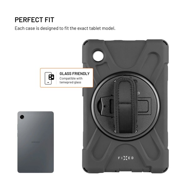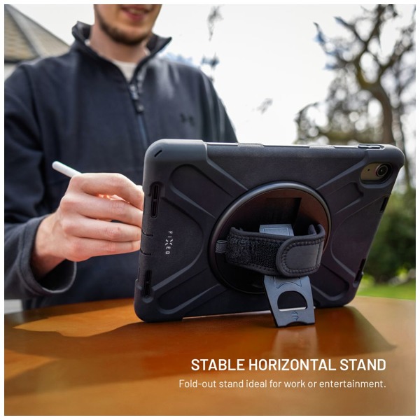 Veľmi odolné puzdro FIXED Rugged Tab je navrhnuté pre maximálnu ochranu tabletu, ľahko odolá pádom, nárazom a každodennému opotrebovaniu. Vystužená konštrukcia rohov a bokov spoľahlivo absorbuje nárazy, zatiaľ čo zvýšené okraje displeja chránia pred poškodením pri položení displejom nadol. Vnútorné silikónové polstrovanie poskytuje dodatočnú absorpciu nárazov a ochranu tabletu. Zadná strana puzdra je vybavená otočnou rukoväťou, ktorá výrazne uľahčuje držanie a manipuláciu s tabletom. Rukoväť sa dá otáčať o 360°, takže ju môžete ľahko nastaviť do ľubovoľnej polohy a pomocou pásu na suchý zips prispôsobiť rukoväť akejkoľvek veľkosti ruky. Rukoväť slúži aj ako praktický stojan - stačí ju vyklopiť a tablet stabilne umiestniť do vodorovnej polohy, čo je ideálne na sledovanie videí, videohovory alebo prácu na cestách. Súčasťou balenia je aj odnímateľný a nastaviteľný popruh, ktorý možno pripevniť k ľubovoľnému rohu puzdra, čo umožňuje pohodlné nosenie cez rameno alebo okolo krku. Puzdro je vybavené aj otvorom na stylus, ochranou konektora a vďaka precíznemu spracovaniu je plne kompatibilné s tabletmi vybavenými ochranným sklom. Puzdro FIXED Rugged Tab poskytuje maximálnu ochranu vášho tabletu, či už ste na stavbe, v teréne alebo na cestách.