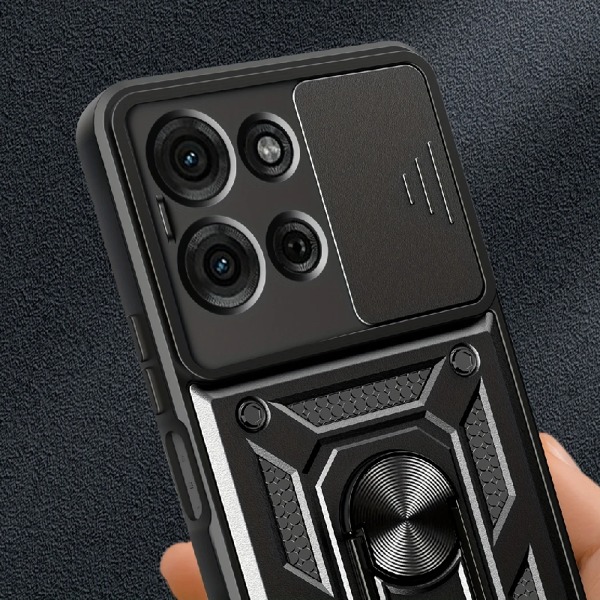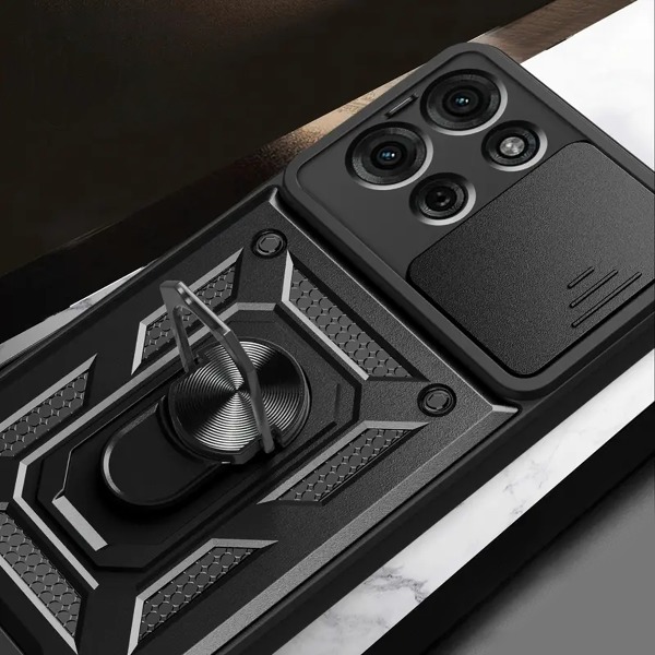 Krytoland pouzdra a kryty na mobil > Kryty a puzdrá na mobilné telefóny > Motorola > Séria Motorola Moto G > Motorola Moto G75 5G > Kryty > Odolný kryt s krytom fotoaparátu a kovovým stojanom pre Motorola Moto G75 - čierny