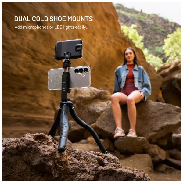 Ohebný statív FIXED Creator je dokonalým pomocníkom na fotografovanie, filmovanie a streamovanie kdekoľvek v teréne alebo doma. Jeho nohy vystužené siedmimi oceľovými vláknami sa dajú voľne ohýbať alebo bezpečne omotať okolo konárov, zábradlí alebo stĺpov. Vďaka tomu ľahko získate dokonalý záber aj na netradičných miestach. Pogumovaný povrch zaisťuje maximálnu stabilitu a zabraňuje pošmyknutiu na hladkých povrchoch. Statív obsahuje nastaviteľný držiak na pripevnenie telefónov s uhlopriečkou do 6,9", ktorý je chránený pred poškriabaním vnútorným polstrovaním klieští. Vďaka otočnému kĺbu možno držiak nastaviť do vodorovnej aj zvislej polohy pre dosiahnutie najlepšieho uhla. Držiak sa dodáva aj s dvoma praktickými adaptérmi na studenú päticu na pripevnenie mikrofónu alebo svetla LED. Po odstránení držiaka môžete použiť univerzálny 1/4" závit na pripevnenie kompatibilných fotoaparátov, akčných kamier alebo iného príslušenstva. Vďaka kompaktným rozmerom a nízkej hmotnosti je to univerzálny statív pre každého, kto chce robiť kreatívne zábery kdekoľvek bez obmedzení.