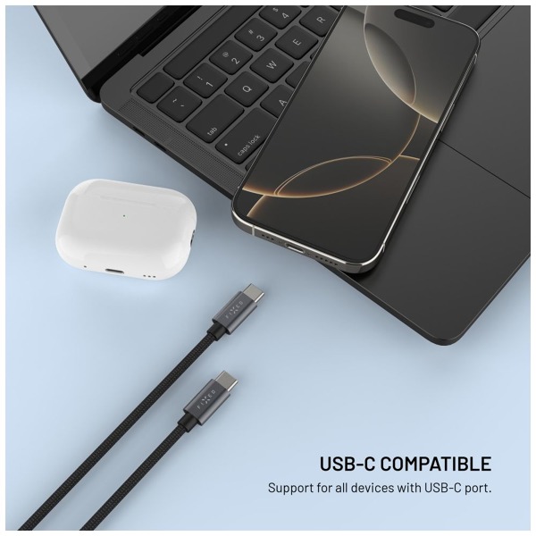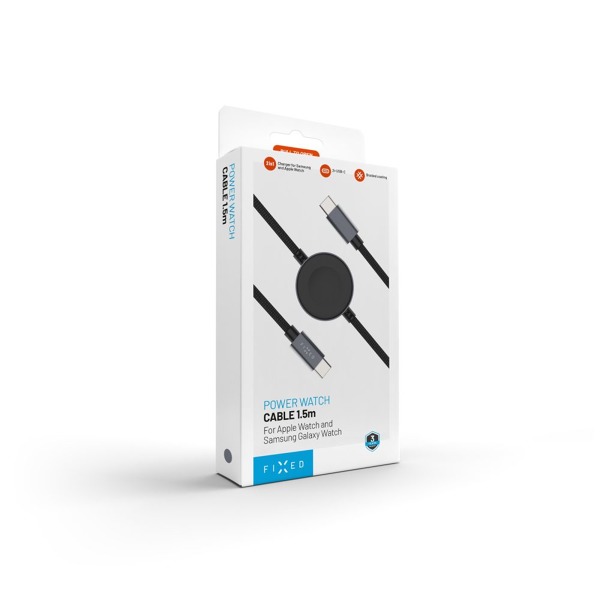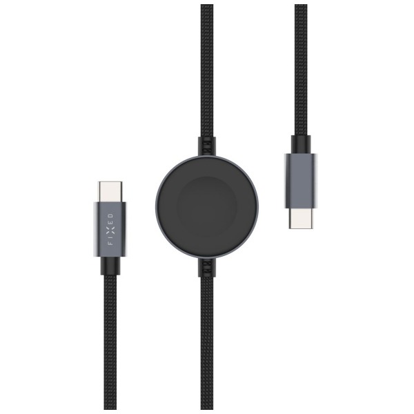 Krytoland pouzdra a kryty na mobil > Príslušenstvo pre mobilné telefóny > Káble > Káble USB-C > USB-C na USB-C > Opletený kábel FIXED Power Watch Cable s konektormi USB-C/USB-C a nabíjačkou pre Apple/Samsung Watch, 1,5 m, PD 60 W, sivý