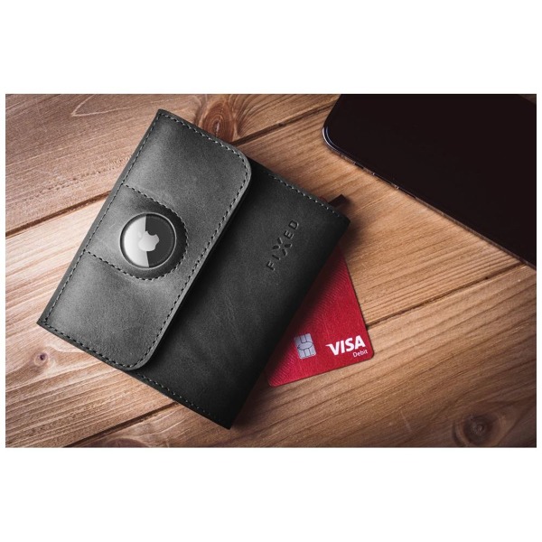 Peňaženka FIXED Classic pre AirTag z pravej hovädzej kože, čierna