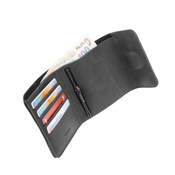 Ručne šitá peňaženka z najkvalitnejšej hovädzej kože, do ktorej sa pohodlne zmestia všetky vaše doklady a karty a ktorá je bezpečne pod dohľadom moderných technológií. Vnútri nájdete 4 vrecká na kreditné karty, veľké vrecko na bankovky, vrecko na mince na zips a vnútorné skryté vrecko. Na vonkajšej strane peňaženky sa nachádza malé vrecko na inteligentný lokalizátor Apple AirTag.