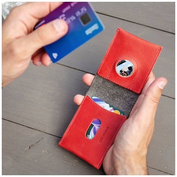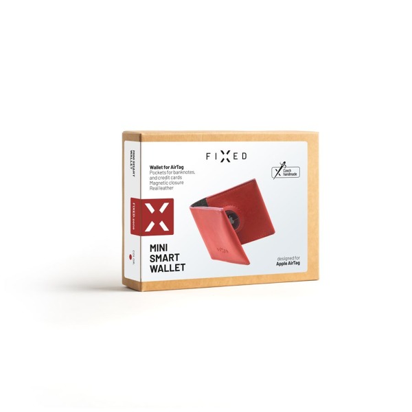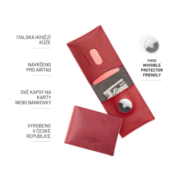 Peňaženka FIXED pre AirTag z pravej hovädzej kože, červená