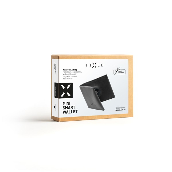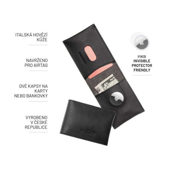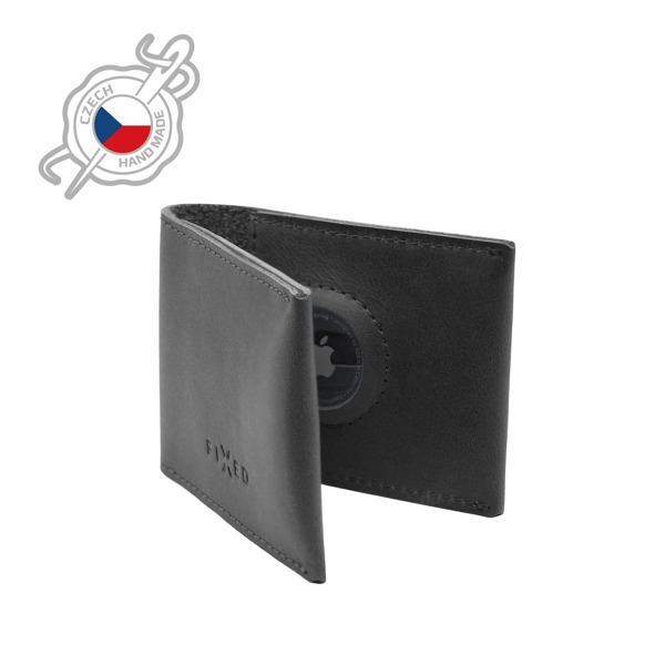Peňaženka FIXED pre AirTag z pravej hovädzej kože, čierna