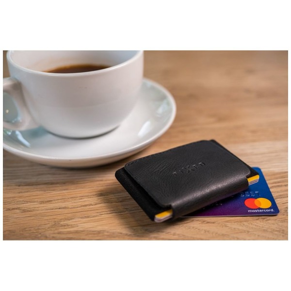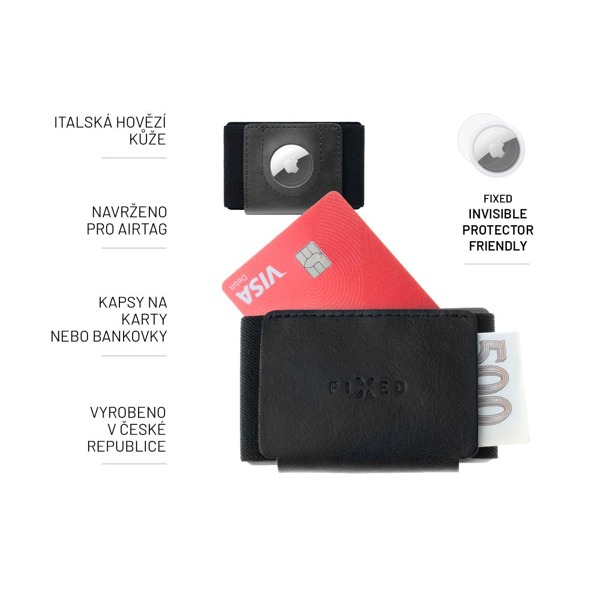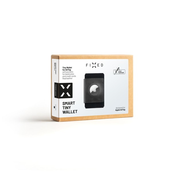 Peňaženka FIXED Tiny Wallet pre AirTag z pravej hovädzej kože, čierna