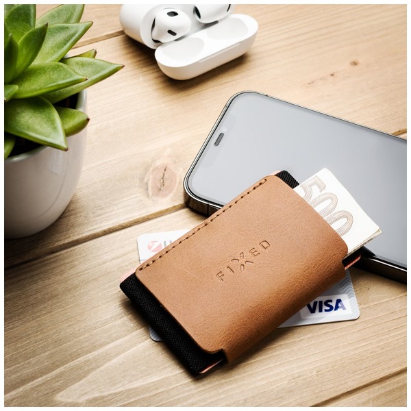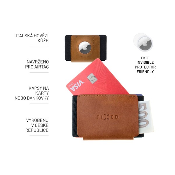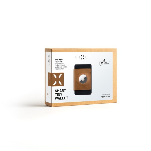 Peňaženka FIXED Tiny Wallet pre AirTag z pravej hovädzej kože, hnedá