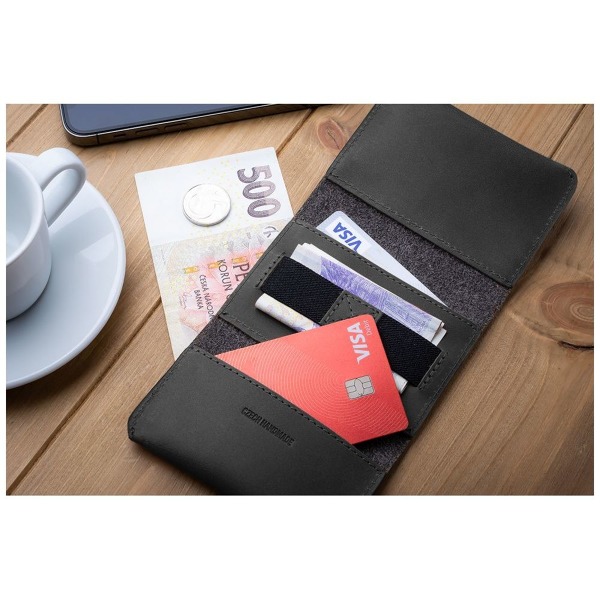 Ručne šitá peňaženka z najjemnejšej hovädzej kože, ktorá sa ľahko schová do vrecka, ale zároveň poskytuje dostatok priestoru na karty, bankovky a mince. Vo vnútri nájdete dve vrecká na kreditné karty alebo účtenky a elastickú priehradku na bankovky, pričom na vonkajšej strane je vrecko na zips na drobné mince. Peňaženka má rozmery len 10 x 7 cm a poteší všetkých priaznivcov moderného minimalistického štýlu.