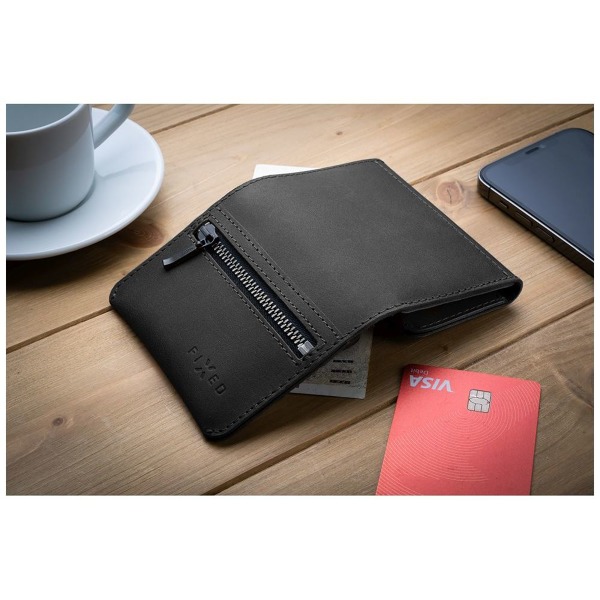 Peňaženka FIXED Tripple z pravej hovädzej kože, čierna