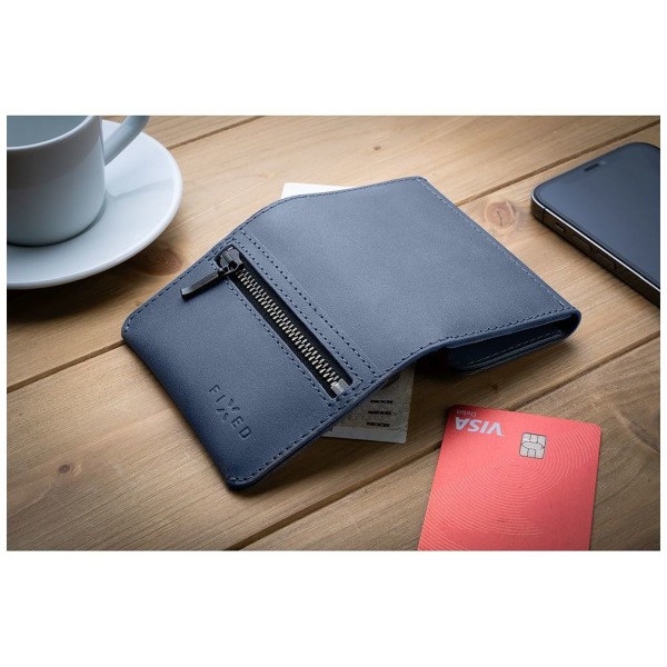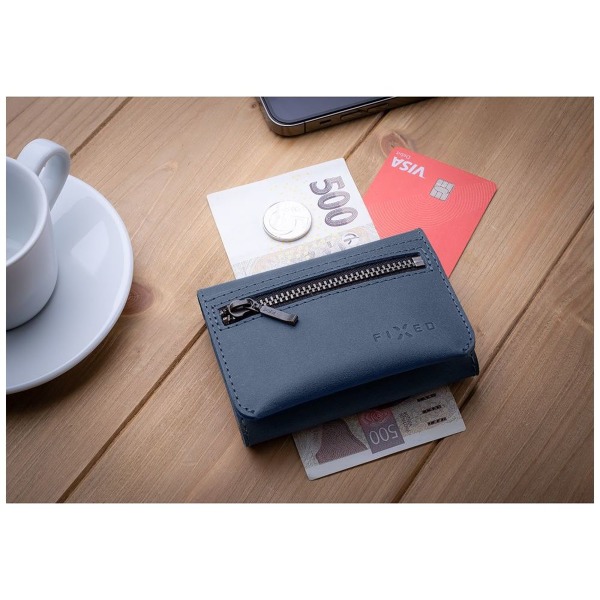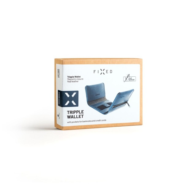 Peňaženka FIXED Tripple z pravej hovädzej kože, modrá