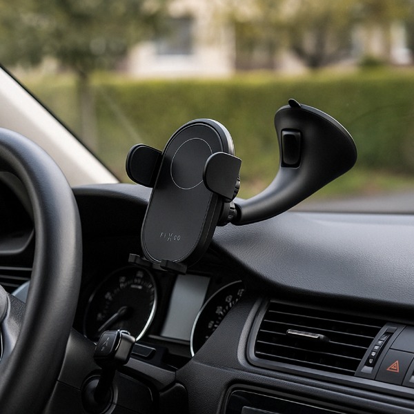 FIXED Automatický držiak do auta Matic XL s rýchlym bezdrôtovým nabíjaním na sklo alebo palubnú dosku, 15 W - čierny