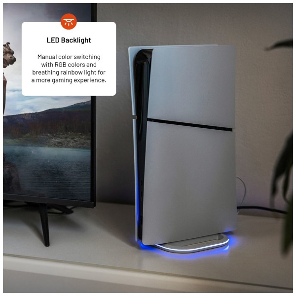 Stojan FIXED pre PlayStation 5 je praktické príslušenstvo, ktoré zabezpečuje stabilitu vašej konzoly a minimalizuje riziko jej prevrátenia. Svoju konzolu PlayStation 5 bezpečne pripevnite k stojanu pomocou skrutky v pripravenom závite konzoly. Vďaka priloženému adaptéru je kompatibilný so súpravou PS5 Slim aj s pôvodnou súpravou PS5. Stojan je tiež prispôsobený pre diskovú aj digitálnu verziu konzoly. Vzhľad stojana a zážitok z hrania umocňuje podsvietenie LED po celom obvode, ktorého farbu možno meniť stlačením tlačidla. Konzola sa k stojanu pripája prostredníctvom priloženého kábla USB-C/USB-A.