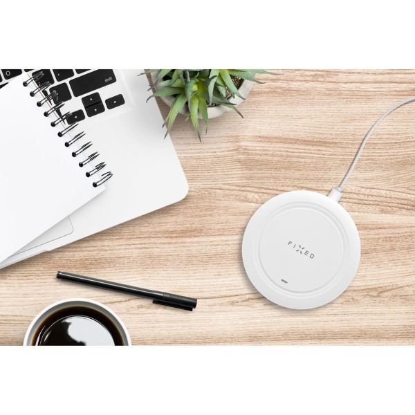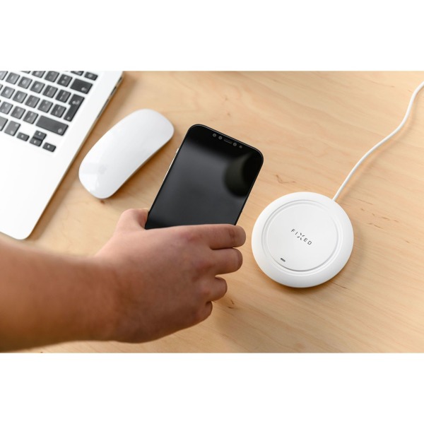 Podložka FIXED pre rýchle bezdrôtové nabíjanie telefónu, 10 W, biela