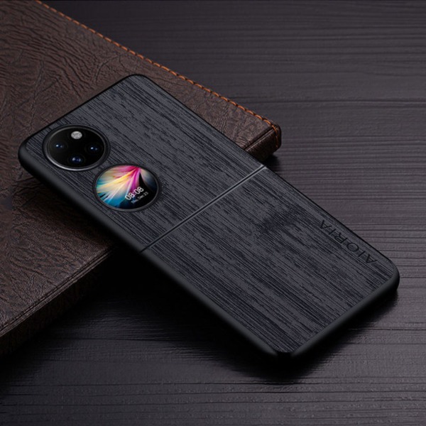 Pogumovaný plastový kryt pre Huawei P50 Pocket - čierny (imitácia dreva)
