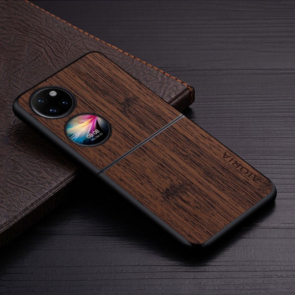 Pogumovaný plastový kryt pre Huawei P50 Pocket - hnedý (imitácia dreva)