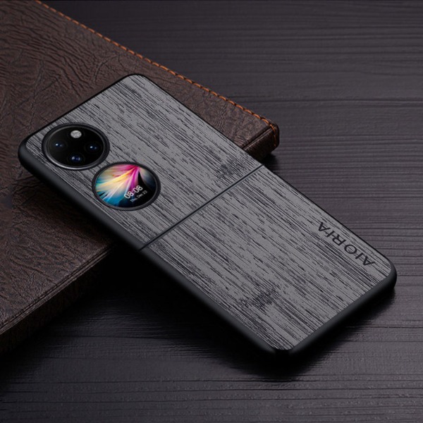 Pogumovaný plastový kryt pre Huawei P50 Pocket - sivý (imitácia dreva)