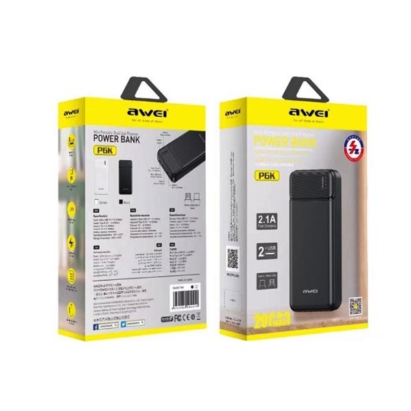 Zabudnite na obavy z nedostatku energie s našou výkonnou power bankou Awei P6K. Táto power banka s kapacitou 20000 mAh a elegantným čiernym dizajnom je dokonalým spoločníkom pre vaše každodenné dobrodružstvá. Nezáleží na tom, či ste na cestách, v škole alebo v práci - s Awei P6K budete vždy pripojení a vaše zariadenia budú plne nabité.