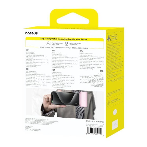 Powerbank Baseus Compact USB-C 5000mAh, 20W (ružová)