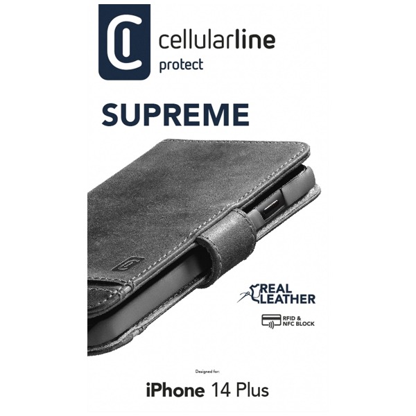 Prémiové kožené puzdro typu kniha Cellularline Supreme pre Apple iPhone 14 Plus, čierne