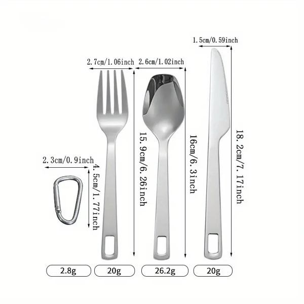 Objavte elegantnú a odolnú súpravu príborov vyrobenú z kvalitnej nerezovej ocele, ktorá spája štýl, funkčnosť a praktickosť pre každú príležitosť. Súprava obsahuje leštený nôž, vidličku a lyžicu, ktoré sú navrhnuté na pohodlné každodenné používanie a na náročné outdoorové aktivity.