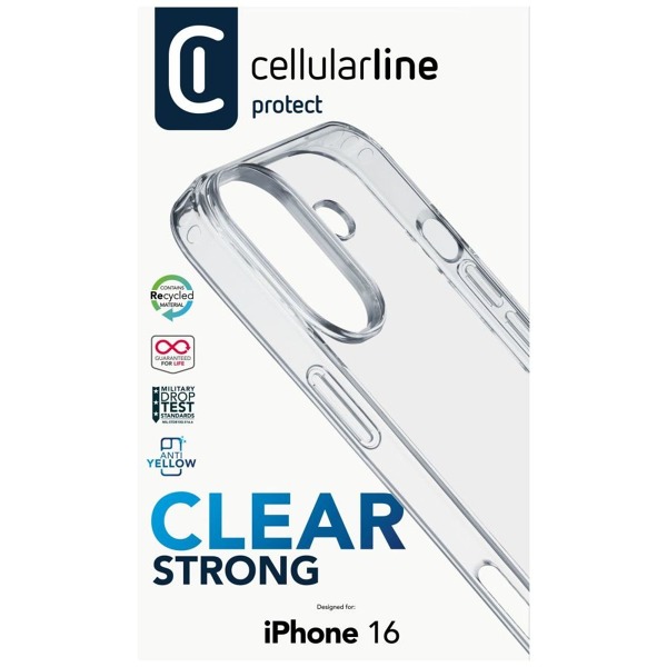 Priehľadný zadný kryt s ochranným rámom Cellularline Clear Duo pre Apple iPhone 16