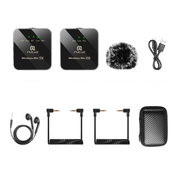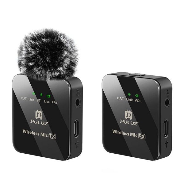 PULUZ 1 TX + 1 RX Bezdrôtový viazací mikrofón