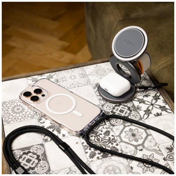 Puzdro FIXED MagPure na krk s čiernou šnúrkou pre Apple iPhone Air