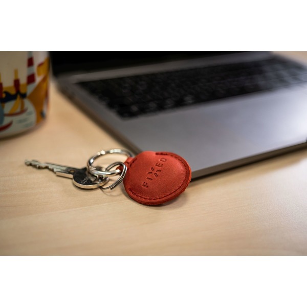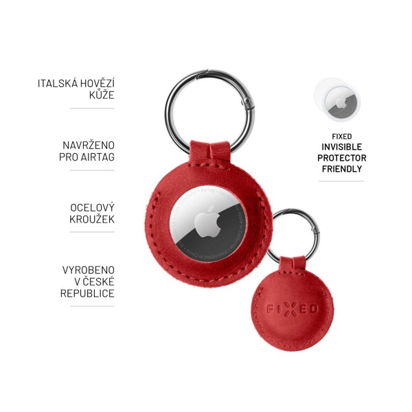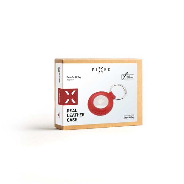 Puzdro FIXED pre AirTag z pravej hovädzej kože s karabínou, červené