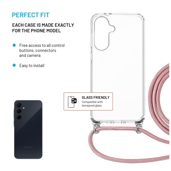 Puzdro FIXED Pure Neck s odnímateľnou ružovou šnúrkou pre Samsung Galaxy A36 5G