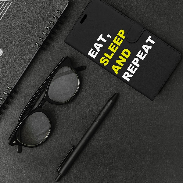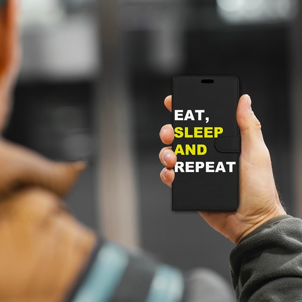 Krytoland pouzdra a kryty na mobil > Kryty a puzdrá na mobilné telefóny > iPhone > iPhone 12 Pro > Flipové / Knižkové puzdrá > Flipy dizajn > Biela > Puzdro na mobil iPhone 12 Pro - Jedz, spi a choď dokola
