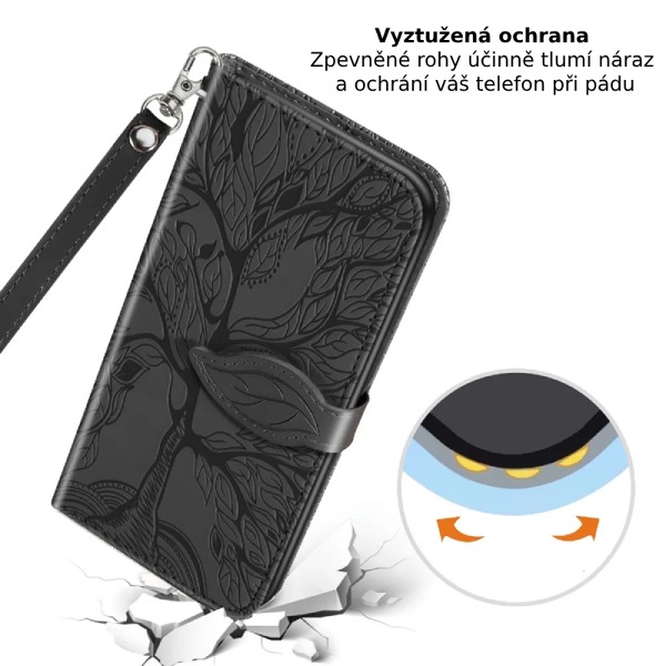 Krytoland pouzdra a kryty na mobil > Kryty a puzdrá na mobilné telefóny > Samsung > Samsung Galaxy série A > Samsung Galaxy A56 5G > Flipové / Knižkové puzdrá > Puzdro na mobil Samsung Galaxy A56 - strom, čierne