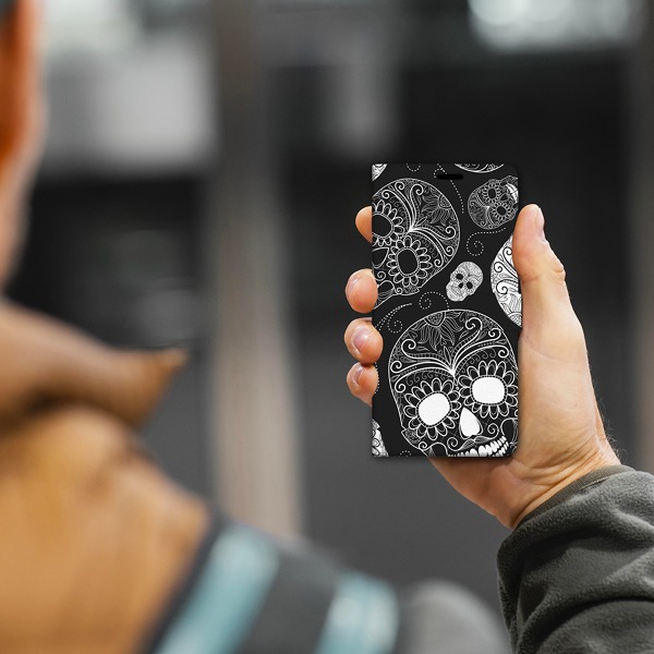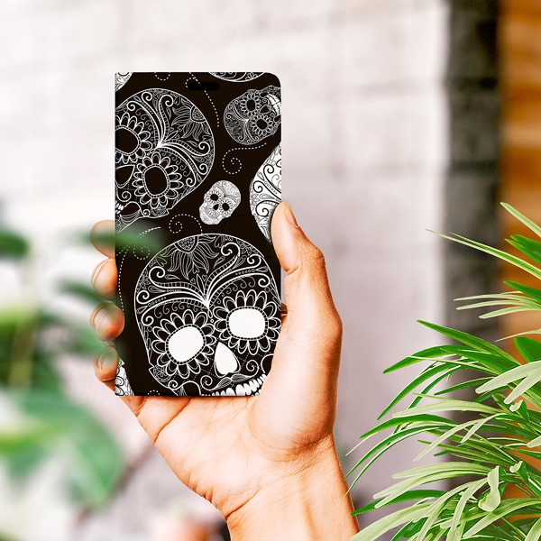 Krytoland pouzdra a kryty na mobil > Kryty a puzdrá na mobilné telefóny > iPhone > iPhone 12 Pro > Flipové / Knižkové puzdrá > Flipy dizajn > Biela > Puzdro na mobilný telefón iPhone 12 Pro - Čierne a biele lebky