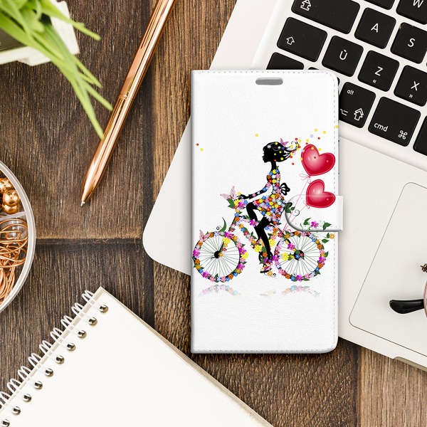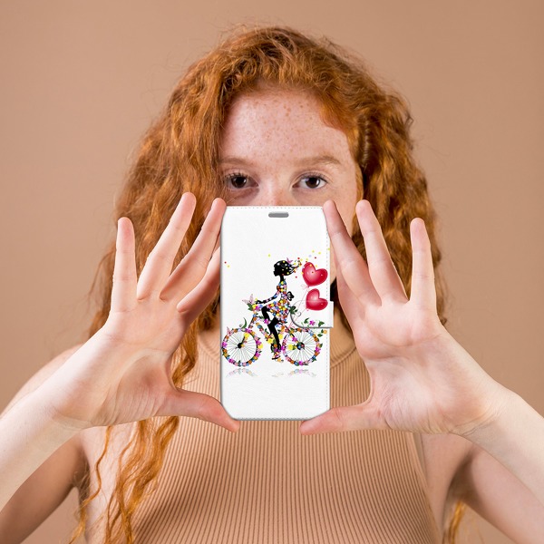 Krytoland pouzdra a kryty na mobil > Kryty a puzdrá na mobilné telefóny > iPhone > iPhone 12 Pro > Flipové / Knižkové puzdrá > Flipy dizajn > Biela > Puzdro na mobilný telefón iPhone 12 Pro - Dievča na bicykli