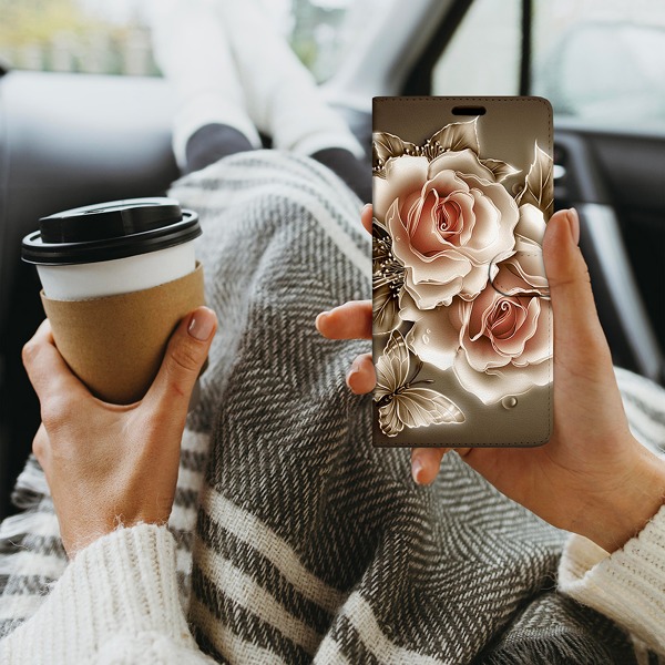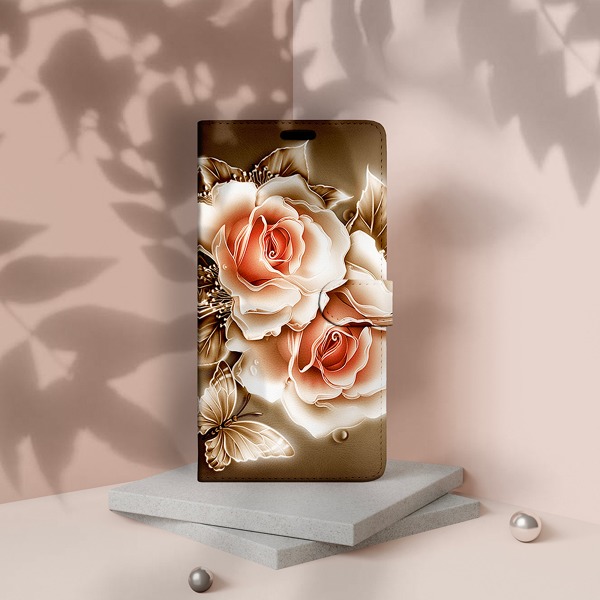 Krytoland pouzdra a kryty na mobil > Kryty a puzdrá na mobilné telefóny > iPhone > iPhone 12 Pro > Flipové / Knižkové puzdrá > Flipy dizajn > Biela > Puzdro na mobilný telefón iPhone 12 Pro - Golden Rose