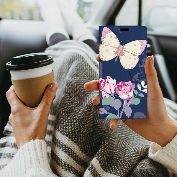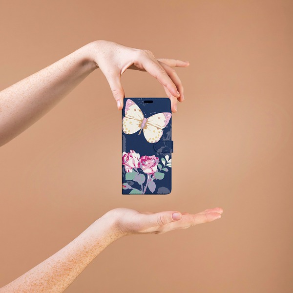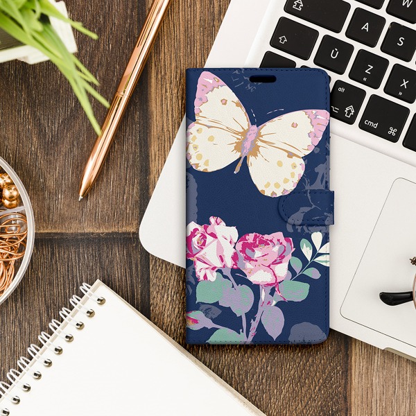 Krytoland pouzdra a kryty na mobil > Kryty a puzdrá na mobilné telefóny > iPhone > iPhone 12 Pro > Flipové / Knižkové puzdrá > Flipy dizajn > Biela > Puzdro na mobilný telefón iPhone 12 Pro - Motýľ s ružou