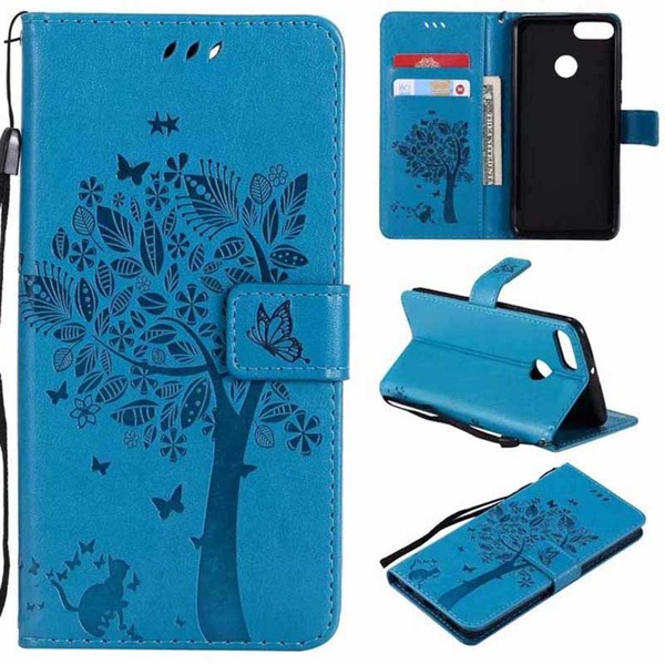 Krytoland pouzdra a kryty na mobil > Kryty a puzdrá na mobilné telefóny > Huawei > Séria Huawei Y > Huawei Y7 Prime 2019 > Flipové / Knižkové puzdrá > Puzdro pre Huawei Y7 2019 - Mačka a strom, modré