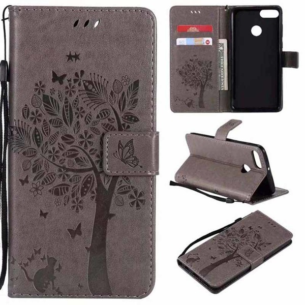Krytoland pouzdra a kryty na mobil > Kryty a puzdrá na mobilné telefóny > Huawei > Séria Huawei Y > Huawei Y7 Prime 2019 > Flipové / Knižkové puzdrá > Puzdro pre Huawei Y7 2019 - Mačka a strom, sivé