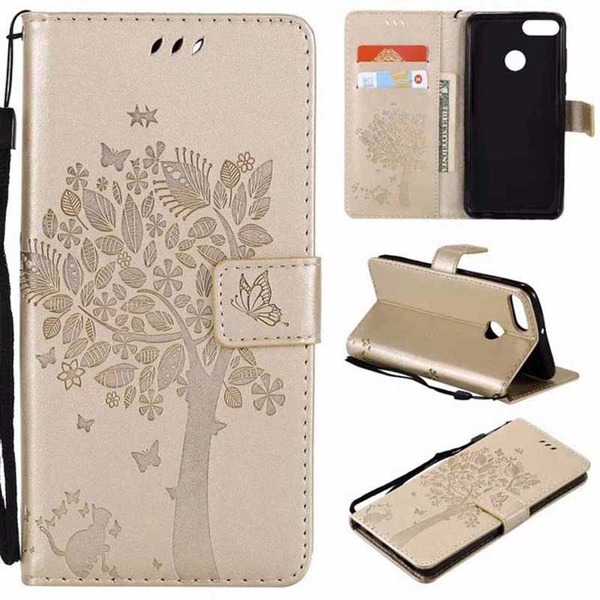 Krytoland pouzdra a kryty na mobil > Kryty a puzdrá na mobilné telefóny > Huawei > Séria Huawei Y > Huawei Y7 Prime 2019 > Flipové / Knižkové puzdrá > Puzdro pre Huawei Y7 2019 - Mačka a strom, zlaté