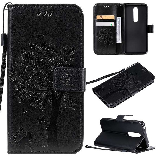 Puzdro pre iPhone 7 - Mačka a strom, čierne